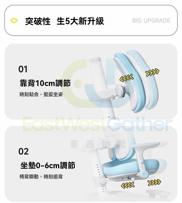 坐墊0-6cm調節,椅背聯動,時刻追背。