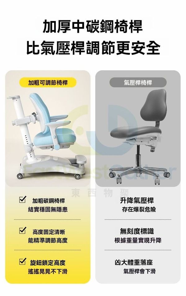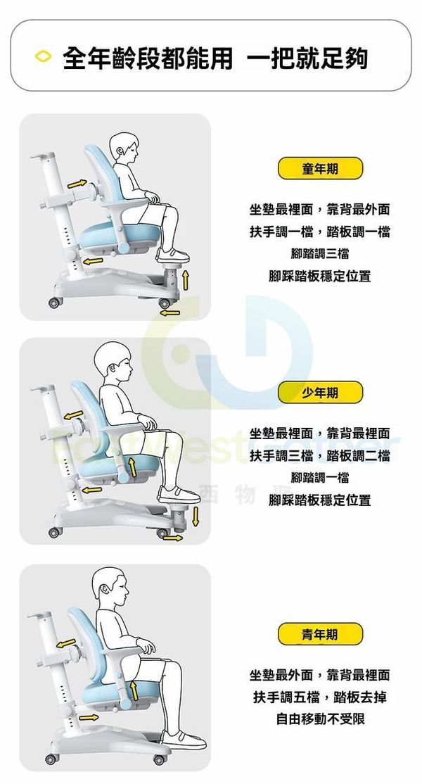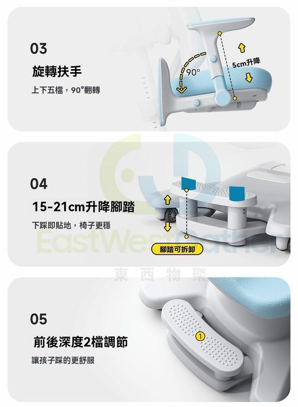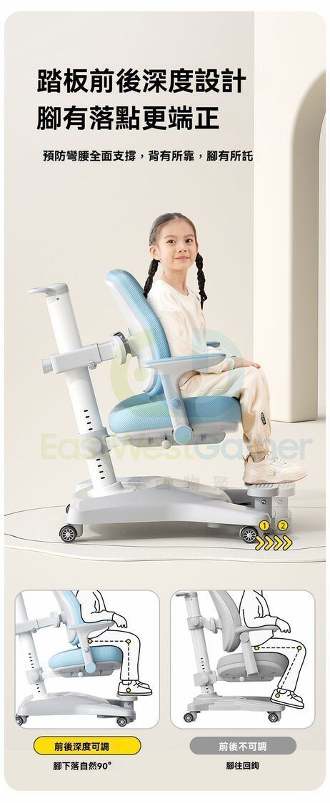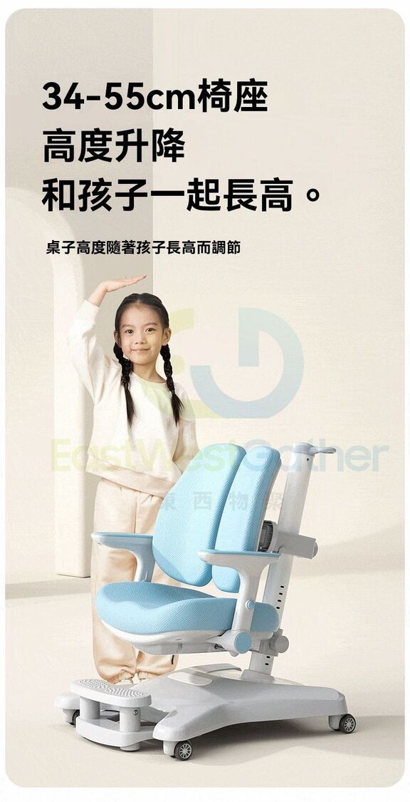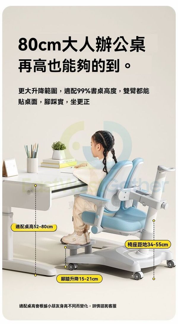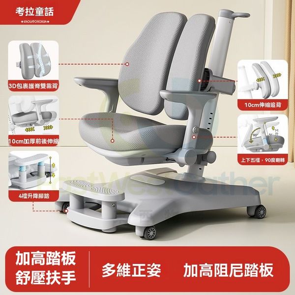東西物聚-包安裝送貨-兒童學習椅 電腦椅 K5【加高踏板+舒壓扶手】追背/支撐/多元/搭配任意高度書桌-星灰 可升降調節矯正坐姿寫字椅 學生椅 辦公椅