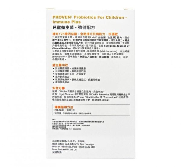ProVen 兒童益生菌 強健配方PROOF (益生菌 + 益生元 (合生原) + 維生素C) 30粒