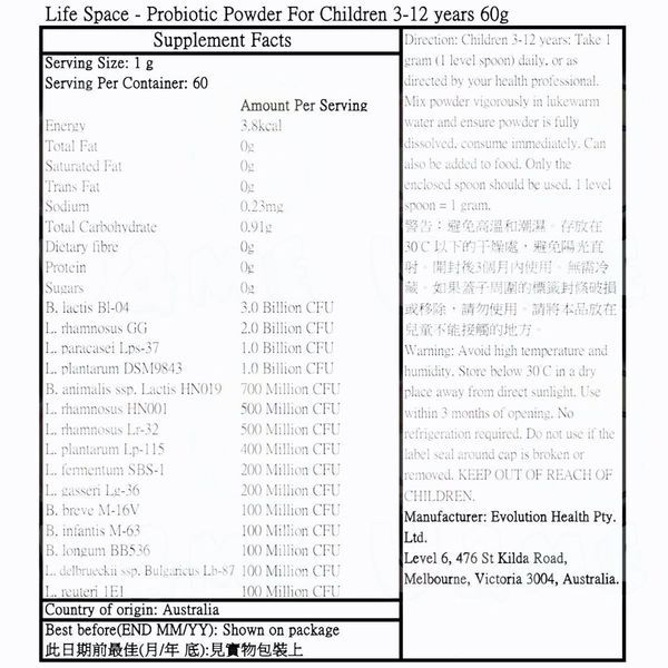 life-space-益倍適兒童益生菌粉 3-12歲 60g