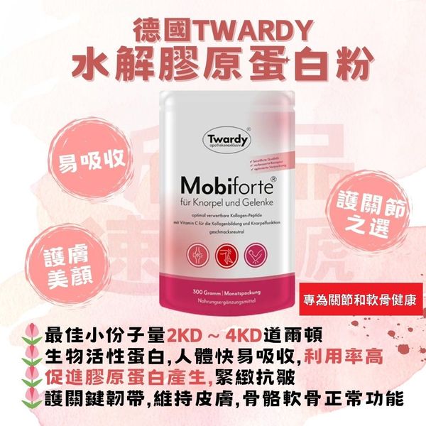 Astrid Twardy GmbH 公司成立於1960年, 是德國藥廠,及德國當地藥界供應商, 主力硏發及生產藥品丶功能營養補充品, 最暢銷的關節產品包括Mobiforte®水解膠原蛋白粉, 和Mobiakut®S關節靈.