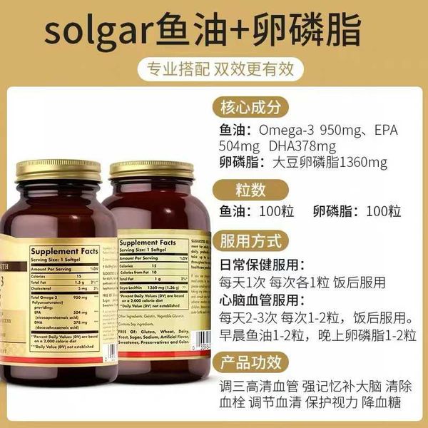 SOLGAR美國進口大豆卵磷脂軟膠囊100粒