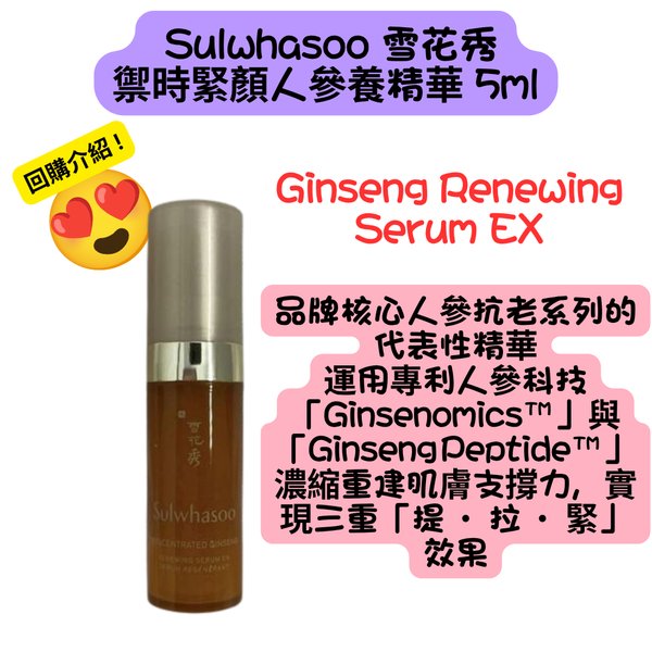 禦時緊顏人參養精華 5ml (Sulwhasoo 雪花秀 - Ginseng Renewing Serum EX) #滋陰生人參煥顏精華露