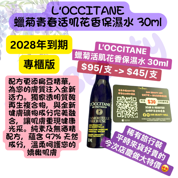 蠟菊青春活肌花香保濕水 30ml (L'OCCITANE EN PROVENCE Immortelle Precious Essential Water)