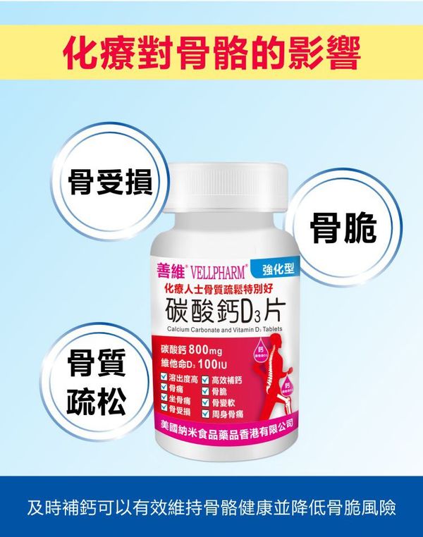善維-特別用於化療人士缺鈣、透析人士缺鈣 骨質疏鬆 周身骨痛 骨受損 骨脆 強化型碳酸鈣D3片60粒/樽 溶解度高 吸收更好 澳洲專利申請