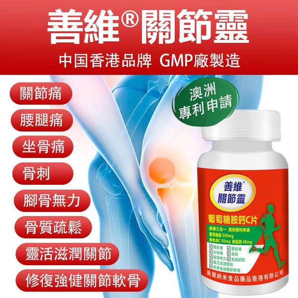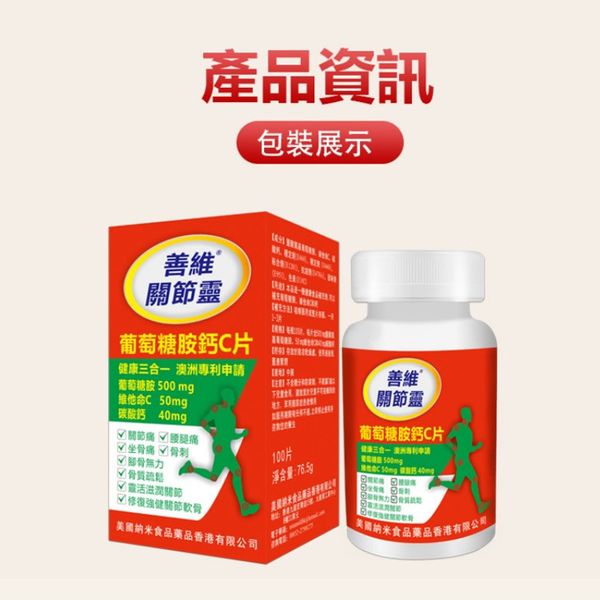 善維-關節靈 結晶型葡萄糖胺 骨科醫生推薦葡萄糖胺 護關節軟骨健骨三合一 複方葡萄糖胺鈣C 100粒/樽,澳洲专利申請