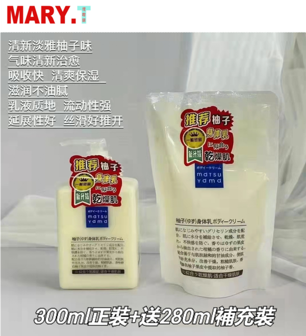 matsuyama-松山油脂柚子身體乳 300ml 送280ml補充裝(平行進口)