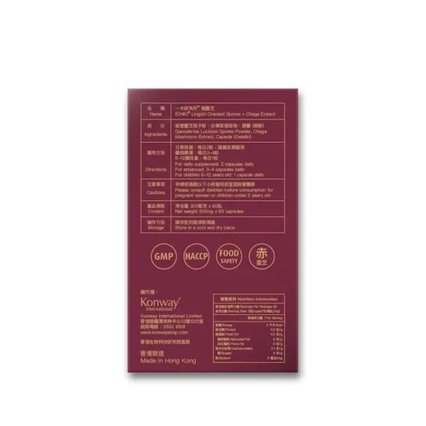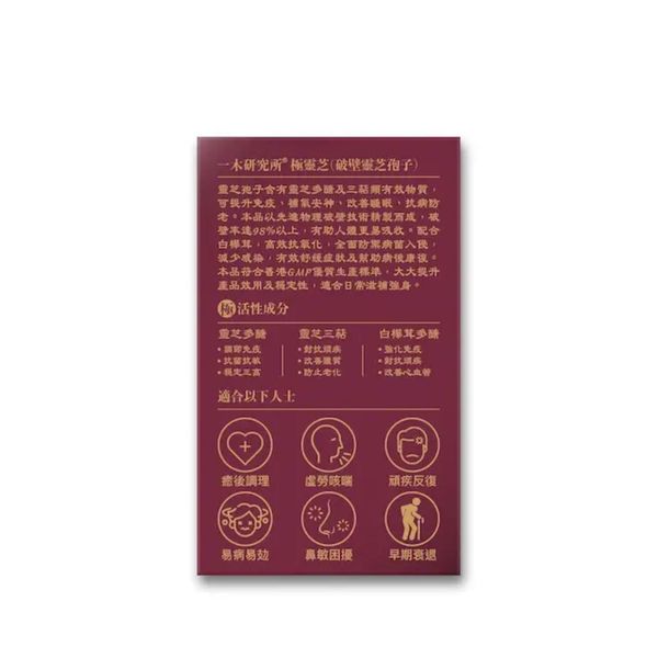 成分:破壁靈芝孢子粉、白樺茸提取物、膠囊 (明膠)