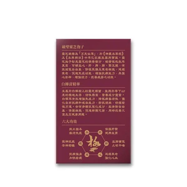 產品名稱:極靈芝 (升級配方:破壁靈芝孢子+白樺茸精華)