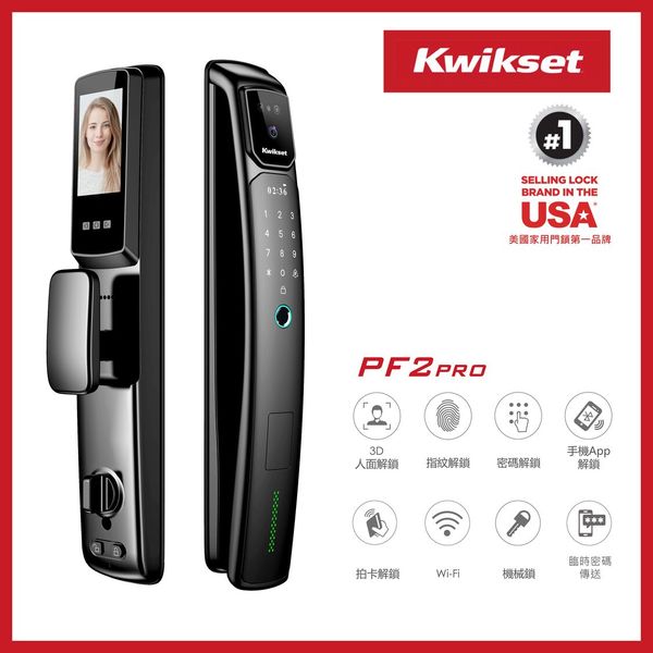 Kwikset-PF2 Pro 人面識別防盜門眼指紋密碼智能電子門鎖