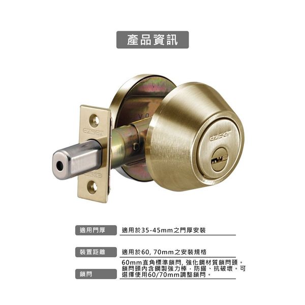 EZSET-LT10110-CI 附加房門鎖 金 PB(CI電腦匙)