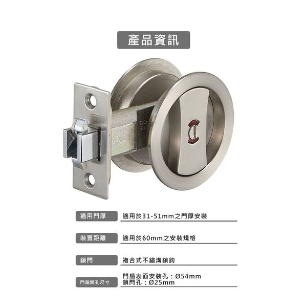 EZSET JS30S30-6 移門趟門鎖 60mm 砂面鎳 SN(無匙)
