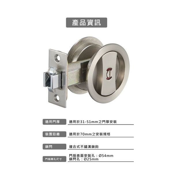 EZSET JS30S30-7 移門趟門鎖 70mm 砂面鎳 SN(無匙)