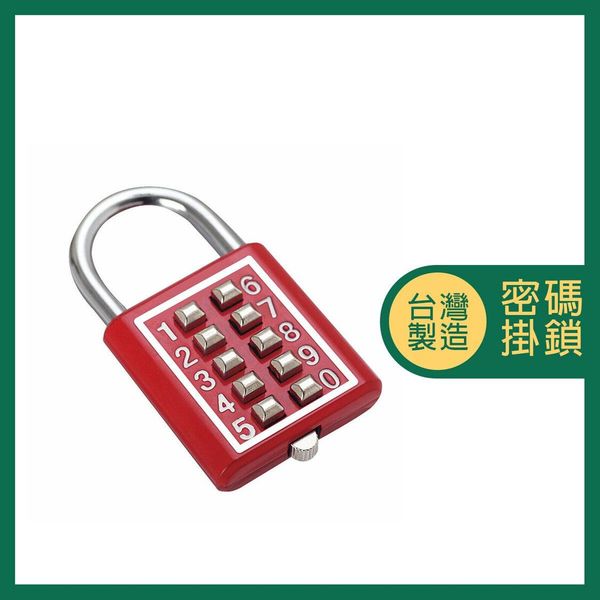 RAPID-台灣製 按鍵式數字密碼掛鎖 10位按鍵 5位密碼 (紅色)