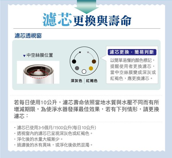 ◎濾心壽命:5個月(1500公升/每日10公升)