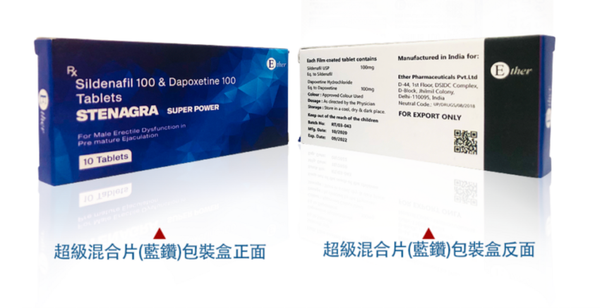 藍鑽威而鋼雙效片 Stenagra super power Sildenafil 100 & Dapoxetine 100 Tablets 10粒/盒 香港現貨 新期:2028年