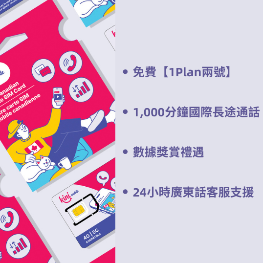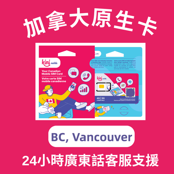 kini mobile - 溫哥華 | 75GB 加拿大5G電話卡 含加拿大號碼 加拿大本地無限通話及短訊 +1000 分鐘國際長途電話至香港等地區 可長期充值使用