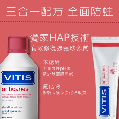 市場唯一具有3種特定作用機制的防蛀和防止牙齒侵蝕的牙膏及漱口水