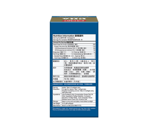家得路特強DHA活腦補眼配方選用優質天然無污染深海魚作原料,配合採用先進分子蒸餾技術提取DHA,製造出高純度及高濃度深海魚油精華,每份提供800毫克DHA,有助活化大腦神經細胞,增強思考力及記憶力,改善視力,維持視覺影像清晰。家得路特強DHA活腦補眼配方亦有助紓缓緊張情緒,改善易敏體質。此產品更通過嚴謹水銀、重金屬及品質測試,確保產品純淨、優質、無污染,是活腦補眼及維持健康之選。