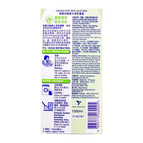 滴露消毒藥水 清新蘆薈1L