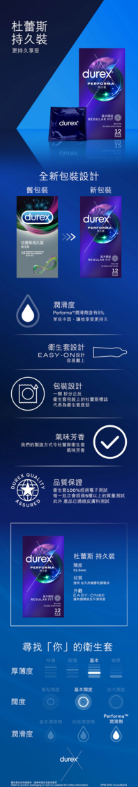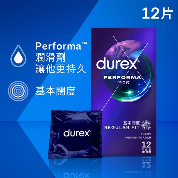 Durex 杜蕾斯 持久裝 乳膠安全套專為那些希望延長表現的使用者設計,含有特別的Performa™潤滑劑,內含5%的苯佐卡因,幫助男士持久保持愉悅的體驗。這款安全套採用透明的天然橡膠乳膠製成,質感柔軟且透氣,保證安全舒適。Easy-On™設計以及儲精袋讓穿戴更加方便簡單,確保每一次的親密接觸都順暢無憂。