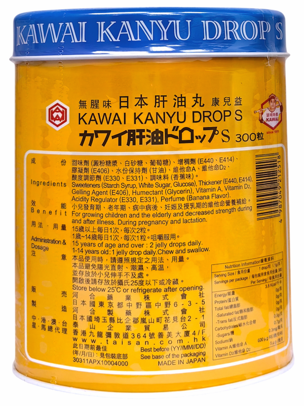 KAWAI-肝油丸A+D 300粒 (香蕉味 香港行貨 ) (0083)
