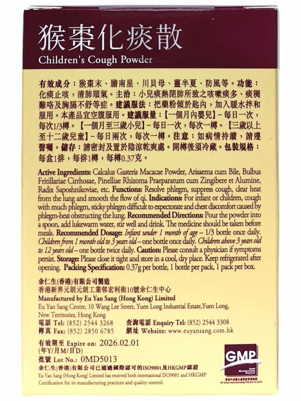 猴棗末、膽南星、川貝母、薑半夏、防風等