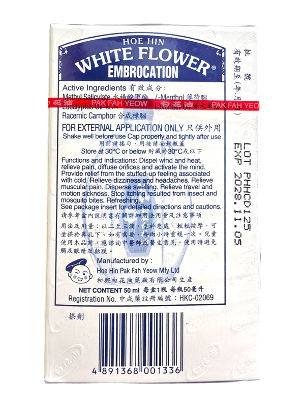 用二至三滴和興白花油,塗於患處,輕輕按摩,可塗搽於鼻孔下。如有需要,每兩小時重複一次。