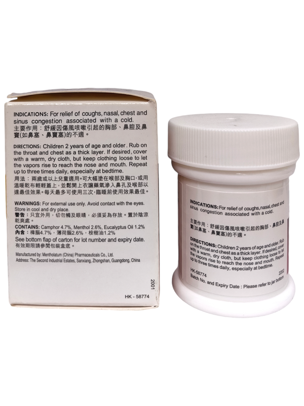 用法:兩歲或以上兒童適用。可大幅塗在喉部及胸口,或用溫暖乾布輕輕蓋上,並鬆開上衣讓藥氣滲入鼻孔及喉部以達最佳效果。每天最多可使用三次,臨睡前使用效果最佳。