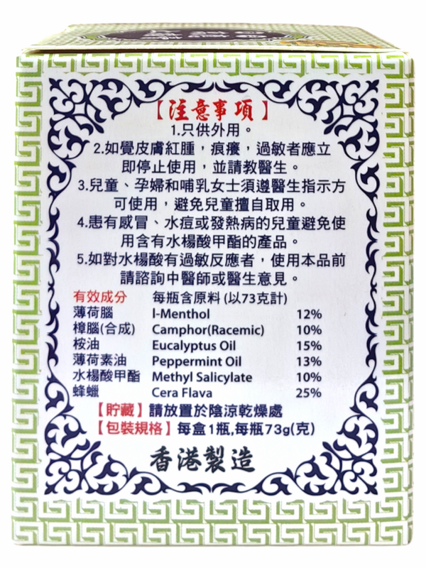 用法:先將痛處以溫水洗淨抹乾,以適量本品塗於患處,然後輕揉數分鐘。亦可用於蚊蟲叮咬。