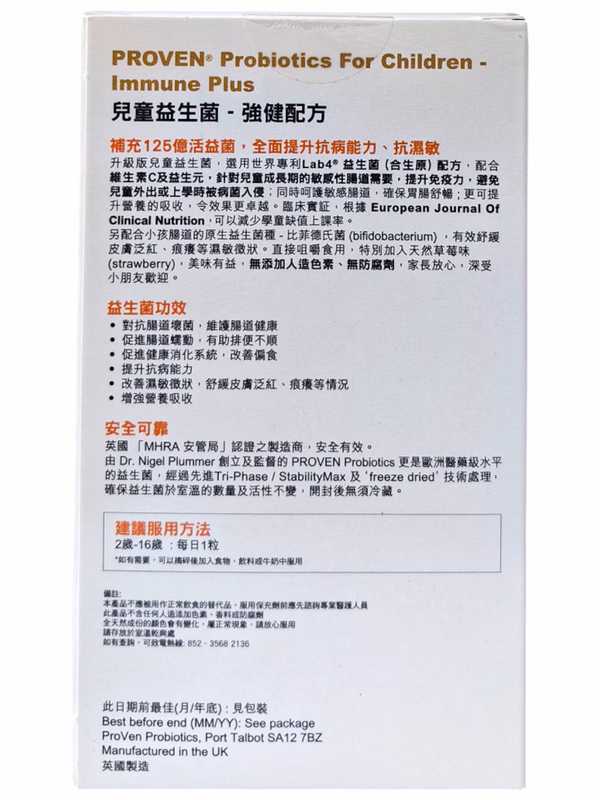 PROVEN-兒童益生菌-強健配方益生菌+益生元(合生原)+維生素C 30粒咀嚼片 (0643)