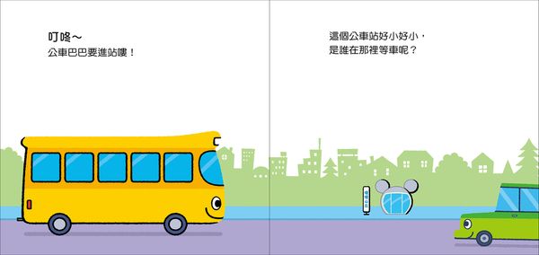 公車穿過大街小巷,到每一站去接小動物們。每個車站都是依照等車的小動物,而有不同的設計唷!