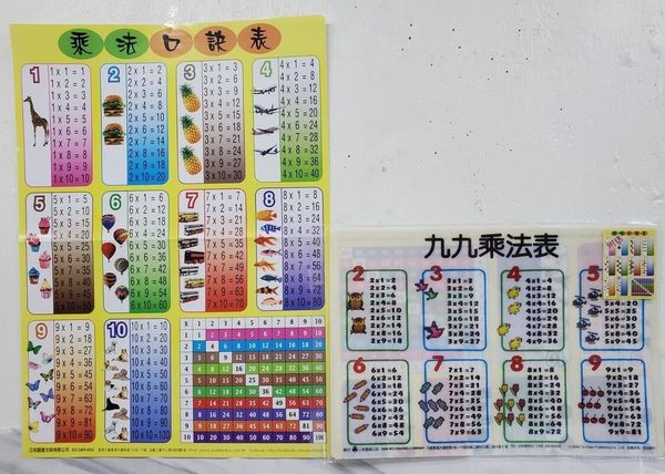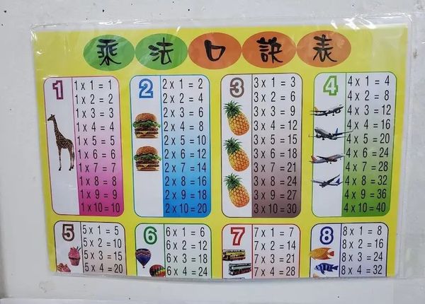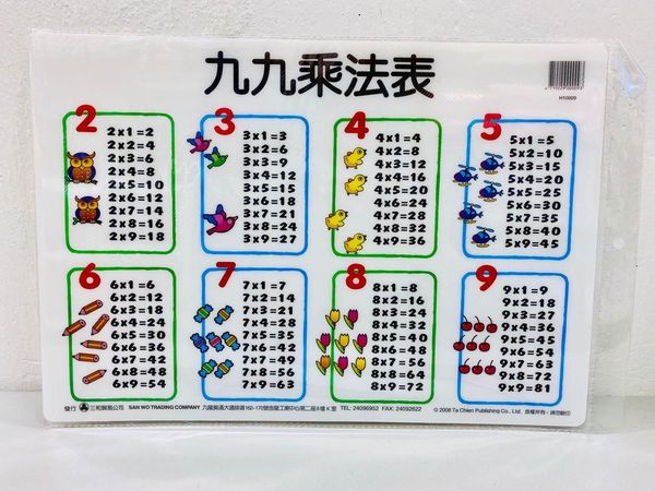非常實用嘅膠墊, 並附乘法口訣表海報, 貼在櫃或牆上, 方便隨時都可以背到。