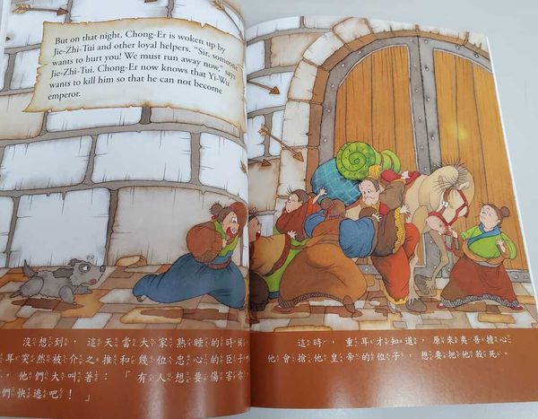 在美麗的皇宮裡,皇帝座位旁邊的蟠龍心中猜想著,下一位皇帝必定是誠實有可靠的重耳。但是皇帝有眾多妃子,其中一個為了讓自己的孩子當上皇帝,而把其他人趕走,重耳只得開始逃亡的生活。在逃亡的日子裡,又餓又累,忠臣介之推竟然端出了一碗熱騰騰的肉湯…
