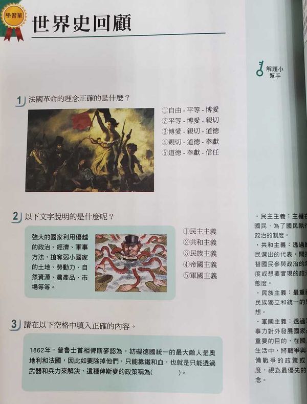 ●世界史回顧:一邊解答問題,一邊複習重點,有助於學習記憶。