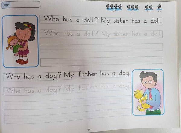 重複練習, 並留一至三行空白位給小朋友發揮, 寫出工整且漂亮的字句。