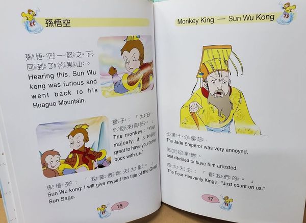 有一個聰明的猴子拿走了龍王的神針,還大鬧天宮,最後被佛祖收服壓在山下。後來,唐僧救了他,他認唐僧作師父,一齊往西天取經。