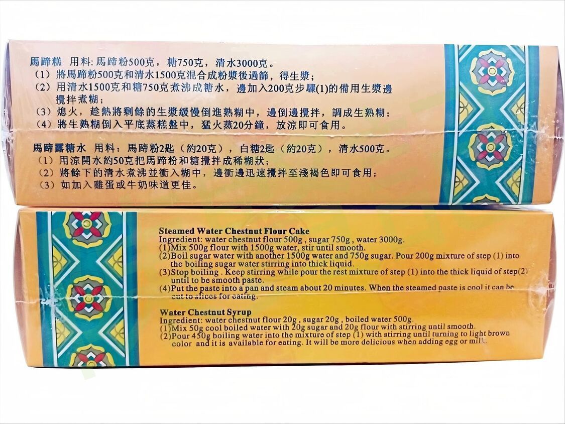 本品採用無污染的廣州泮塘特産馬蹄精製而成,可制作各種咸甜糕點,也可作甜品、菜肴、上湯、打芡之用。