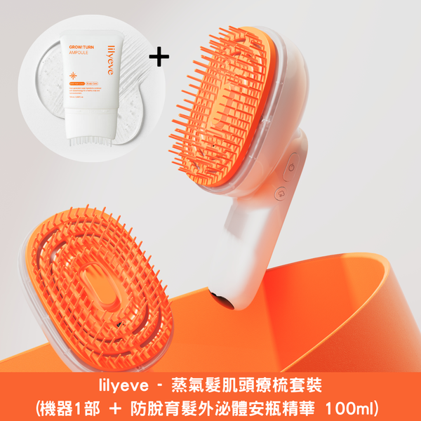 lilyeve - 蒸氣髮肌頭療梳套裝(機器1部 + 防脫育髮外泌體安瓶精華 100ml)