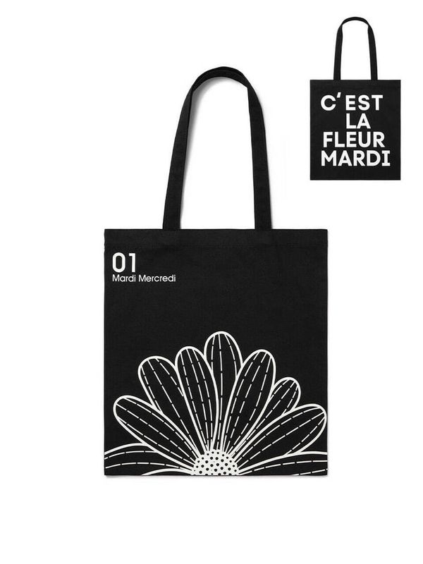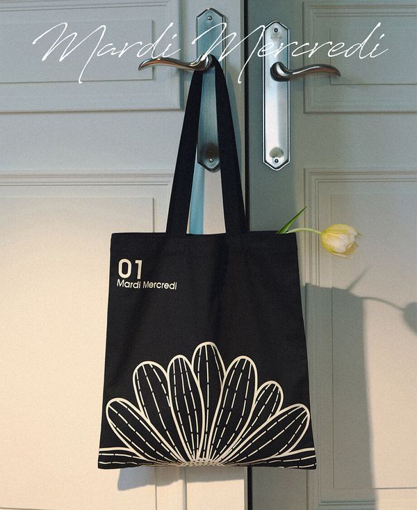 MARDI MERCREDI - CANVAS BAG FLOWER_BLACK WHITE (預購|13/6起韓國出貨)