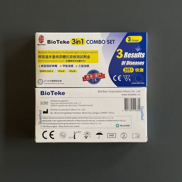 BioTeke-(5盒) (3合1) 新冠病毒/甲/⼄型流感快速抗原檢測試劑盒 【額外加送拭子適合兒童採樣用】