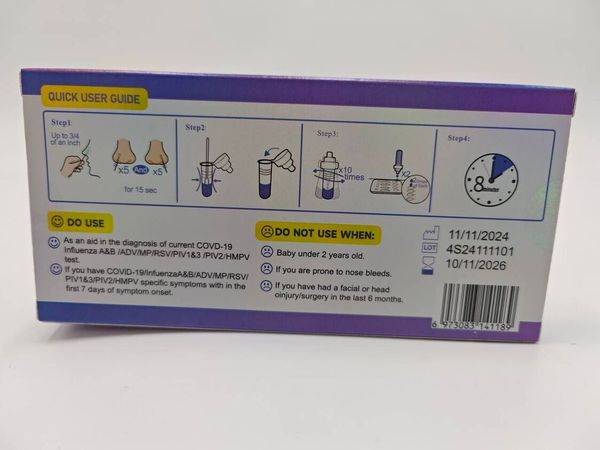 【1支】【9合1】 副流感2型/副流感1/3型/新冠病毒測試/甲/⼄型流感/RSV合胞/ADV腺病毒/MP&Flu肺炎/人類偏肺病毒(單支裝) 歐盟CE認証