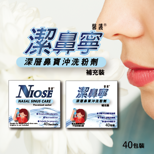 Hilary-53. 潔鼻寧 深層鼻竇沖洗粉劑 補充裝 40包裝 x 4盒 (香港行貨)【深層沖洗致敏原 溫和洗鼻】