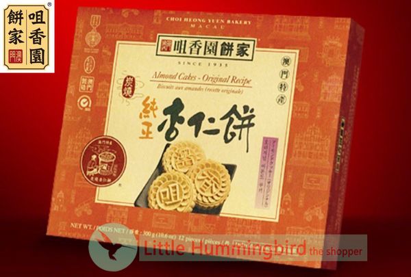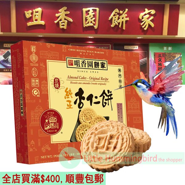 咀香園 炭燒 純正杏仁餅 (12件裝) 300gX1盒 澳門90年手信名牌 Almond Cakes 杏仁餅 曲奇餅乾 傳統手工製作 小食 素食 人氣澳門手信 特產送禮 公司禮品 澳門直送 平行進口