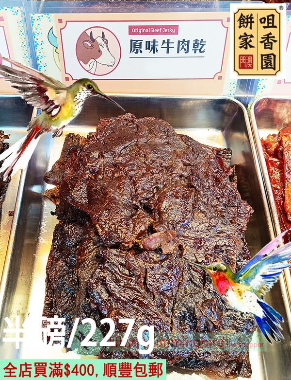 咀香園 新鮮炭烤 原味牛肉乾 半磅(227g)X1袋 澳門手信名牌 Fresh BBQ Beef Jerky 有汁牛肉乾 厚切大塊 人氣澳門手信 特產 (即埸入袋 採購當日寄出) 澳門直送 平行進口
