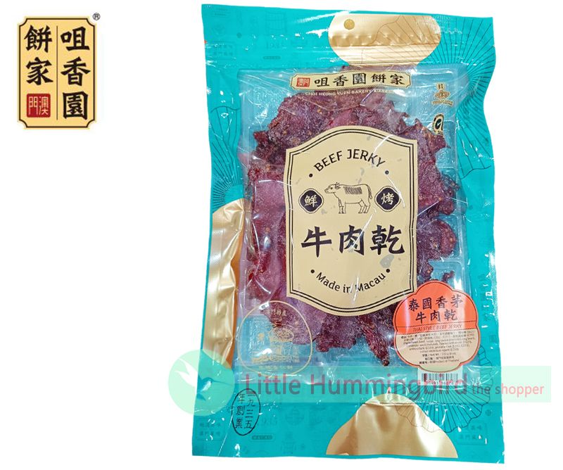 咀香園 鮮烤 泰國香茅牛肉乾 (原塊牛肉)半磅227gX1袋 澳門90年手信名牌 BBQ Beef Jerky 新鮮炭烤 有汁 牛肉乾 每天現烤 人氣澳門手信 特產送禮 澳門直送 無防腐劑 平行進口