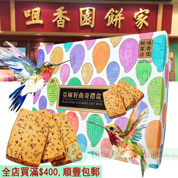 咀香園 葡式亞麻籽曲奇 (禮盒裝)335gX1盒 澳門90年手信名牌 Flax Seed Cookies 曲奇餅 方塊酥 自家製作 零食 人氣澳門手信 聖誕節 生日 情人節送禮 澳門直送 平行進口