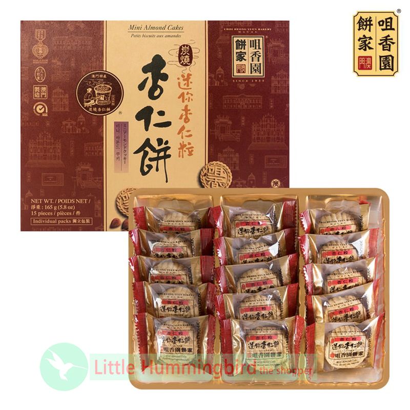咀香園 炭燒 迷你杏仁粒杏仁餅 (15件裝) 165gX1盒 澳門90年手信名牌 Almond Cakes 杏仁餅 曲奇餅乾 傳統手工製作 零食小食 素食 人氣澳門手信 特產送禮 澳門直送 平行進口