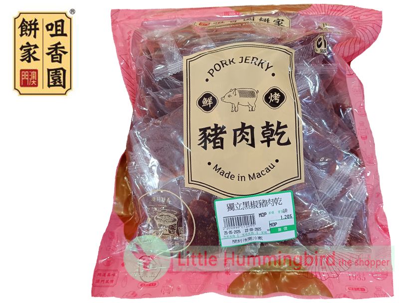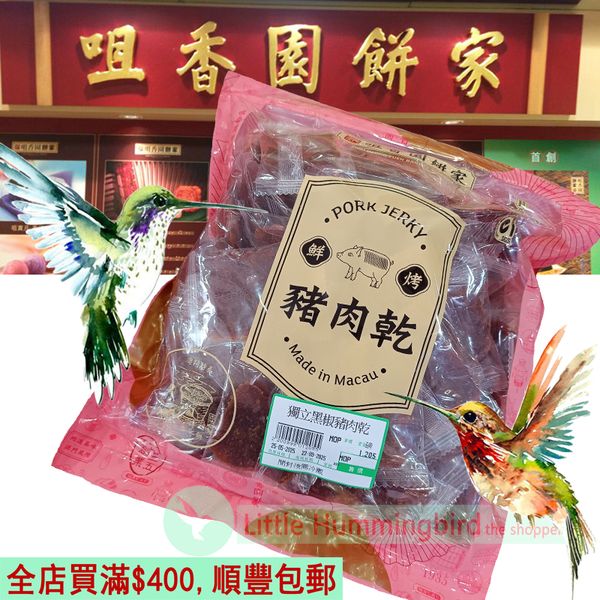 咀香園 鮮烤 黑椒豬肉乾 (獨立包裝)1磅453gX1袋 澳門90年手信名牌 BBQ Pork Jerky 新鮮炭烤 有汁 豬肉乾 每天現烤 人氣澳門手信 特產送禮 澳門直送 無防腐劑 平行進口