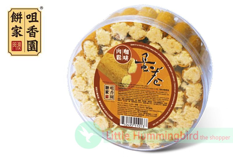 產品成份 : 咖啡豆, 豬肉鬆, 雞蛋, 麵粉, 植物油, 牛油, 吉士粉, 乳化劑, 調味料, 食用色素, 抗氧化劑, 糖, 鹽